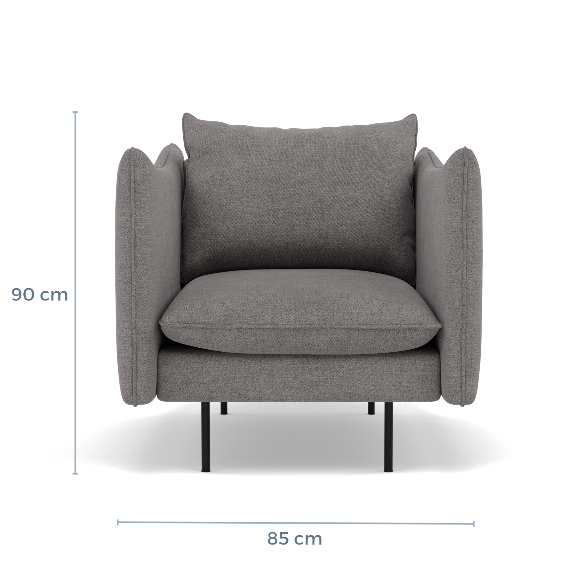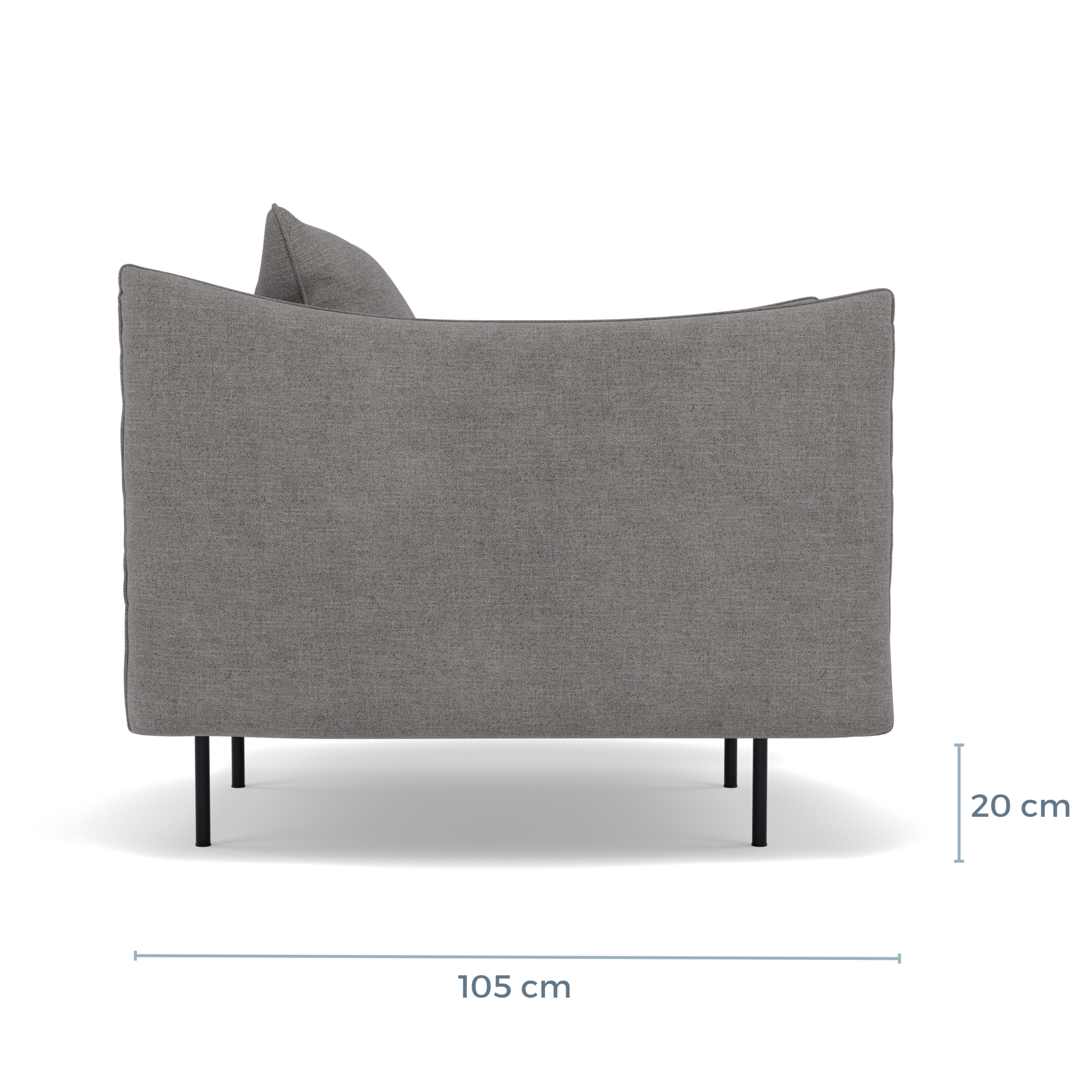 Su estructura esta conformada de pino cepillado con resorte en zig zag para mayor comodidad. Utilizamos Hule de la más alta calidad en 27Kg en toda la estrutura para poder crear un mueble con mayor soporte y durabilidad. Berna cuenta con patas tubulares de 16cm en metal con acabado negro mate.